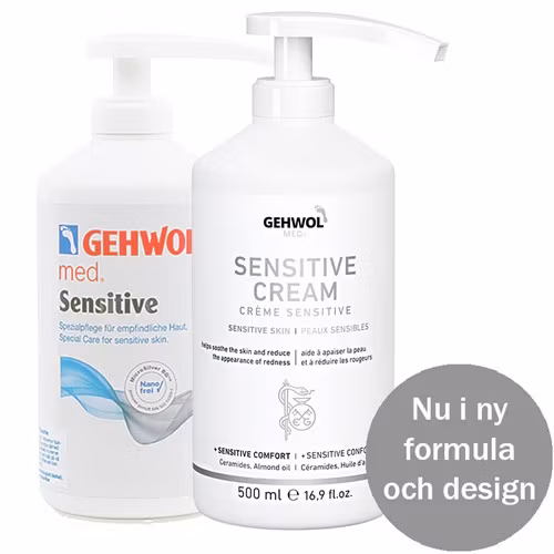 Gehwol med@ Sensitive är speciellt utvecklad för känslig hud. Berikad med ceramider och mandelolja hjälper den till att lugna huden och reducera rodnad. Denna fina kräm stödjer hudens naturliga barriärfunktion och hjälper den att se frisk ut, samtidigt som huden tillförs fukt. Innehåller inga parabener, parfymer PEG mjukgörare,eller siliconoljor.